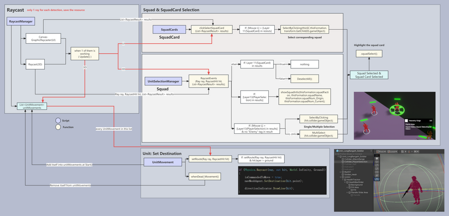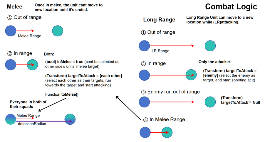 I first documented and analyzed the operations and unit logic of my reference, Total War: Shogun 2, created different diagrams for the logic, and then simplified and customized them for my own needs before implementing them in the engine. For original special mechanisms, I will also create diagrams before trying to implement them in the engine.